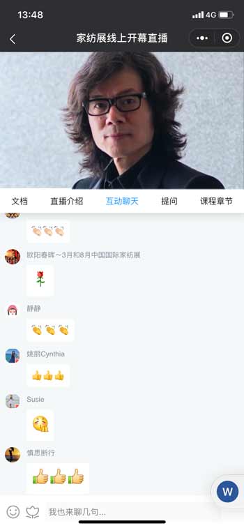 昨日下午,Intertextile直播间首次开播,就累计近万人次观看,把云展会推向高潮。来自行业的12家品牌企业,在直播间现场发布新产品,分享营销方案、设计方案、服务指南等,为家纺人破局2020指明了方向。