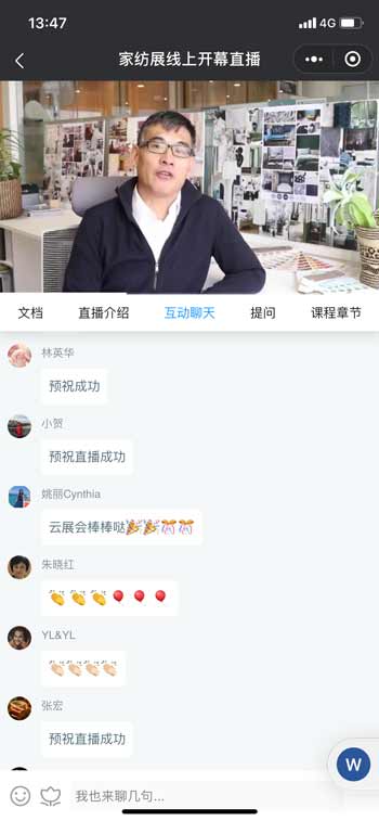 鑫亚伦纺织设计总监张立业提到,对家纺企业来说,云展会在这个特殊时期可谓是及时雨。感谢中家纺和杭州互帘服务平台,为企业提供了开拓新渠道、寻找新机遇的重要平台。