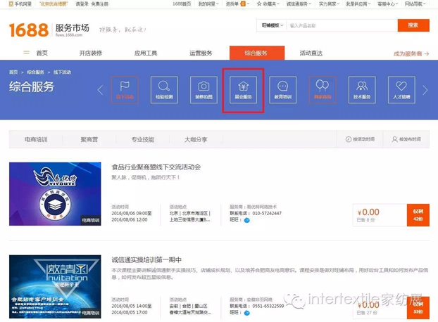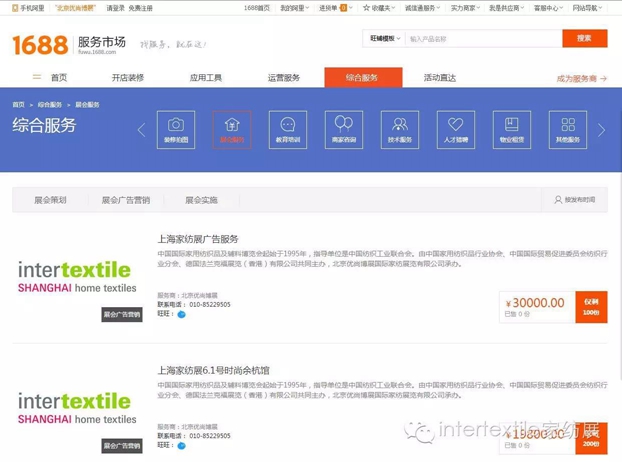 中国国际家用纺织品及辅(秋冬)料博览会与阿里巴巴在1688服务市场开启了全新的展会服务内容,平台不仅有信息发布的功能,并兼具报名参展咨询等服务。