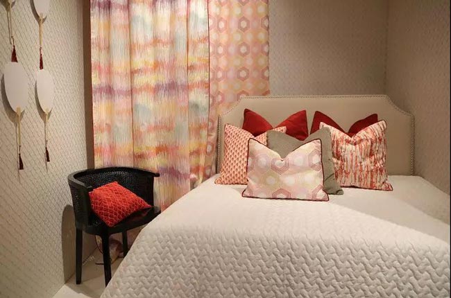 而升丽纺织的产品已由原来的欧式、法式逐渐转变为现代轻奢路线,产品在以前高品质不变的情况下,性价比更高,并打破现有市场无高端窗纱的现状。本次展会上,升丽的展位搭建风格外观比较时尚,内部整体以轻奢风格为主,陈列布置分为四大区域:升丽,以民用家装为主;白金汉,走设计师路线,以轻奢为主;SENZZA为提花窗纱,以设计师风格为主,比较现代,符合80后、90后的审美要求;此外还有专门的外贸区域,并通过客厅、主卧、次卧、书房不同的空间设置进行整体展示。